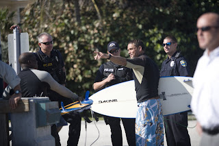 Wednesday morning I headed up to Juno Pier to shoot and maybe catch a few myself. Arrived at about 7am for some good morning light and shot for a while until the tide got pretty high. Went in exchanged my camera for a board and was paddling out when a fisherman and a the whole lineup got into a little quarrel. Long story short…from my understanding the fisherman was shark fishing with his line directly into the lineup, which was illegal. One of the surfers then snapped the line. The fisherman, on the end of the pier, then proceeded to throw out a sinker weight, striking an off duty West Palm Beach Police officer. The cops were called, sides were heard and the fisherman was escorted away, supposedly arrested….