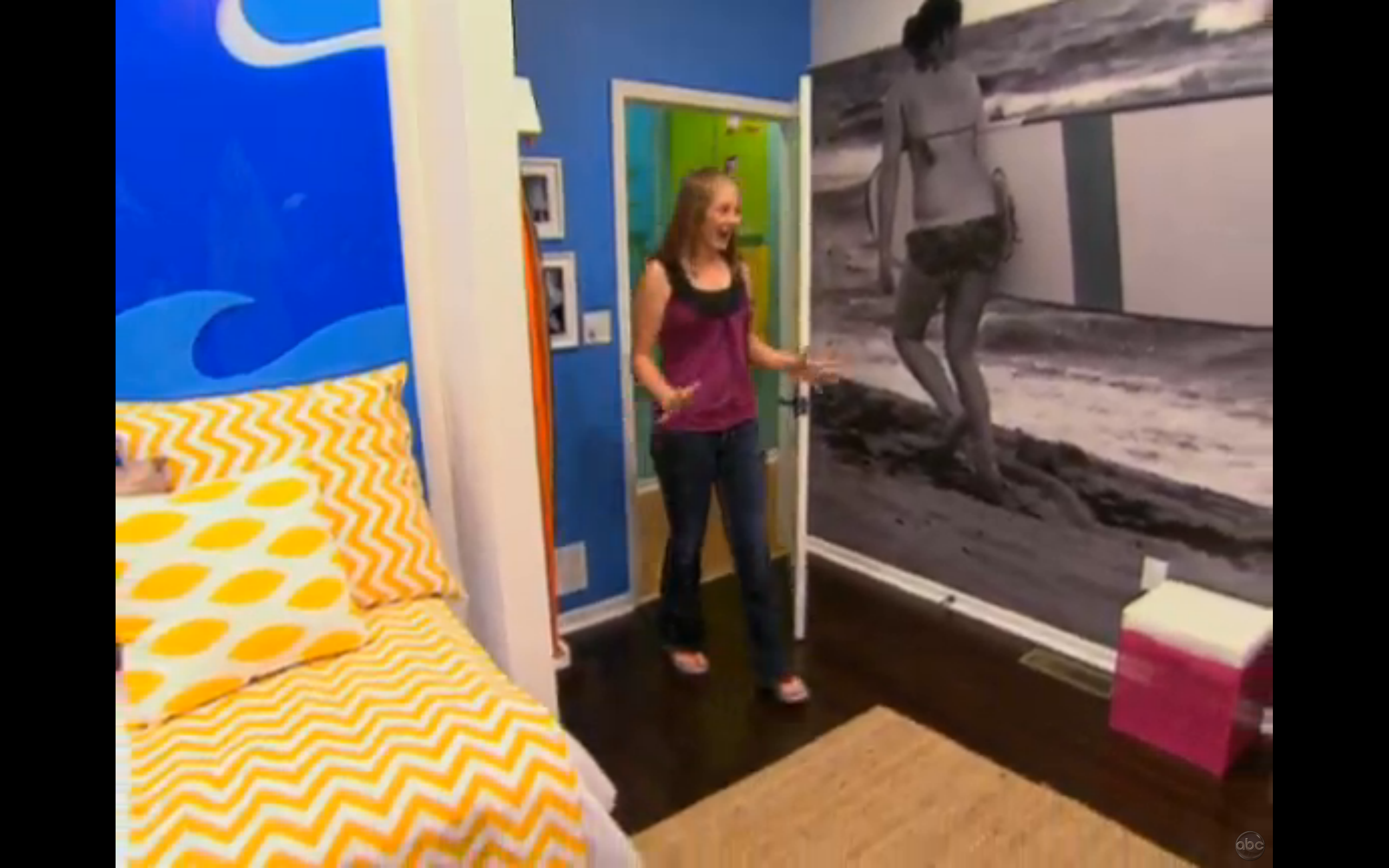 Last November Extreme Makeover Home Edition contacted us to shoot the Gibbs vacation getaway while there house was being made over in Iowa. I was assigned to capture one of the girls surfing with the goal of creating a mural in her new room. Below is the photo they chose for the room as shown on the show.