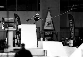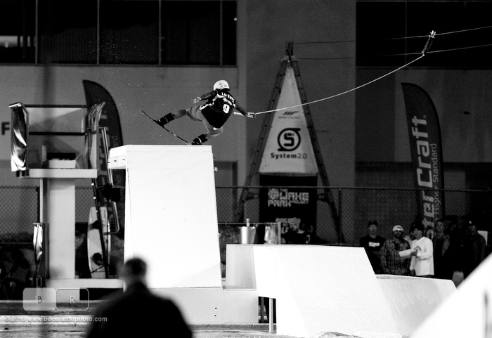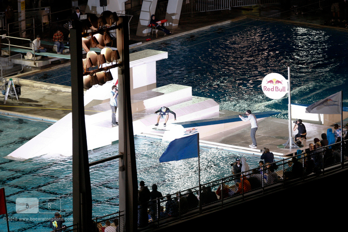 Sporting events are usually pretty similar, but whenever Red Bull takes over things usually take an out of the box thought process in building. They once again didn’t let down with a pretty unique wakeboarding and wakeskating event taking place at night at an Olympic training pool complex. A cable runs the entire length of the pool whipping riders into their runs down to one end and then back. You probably missed it!
